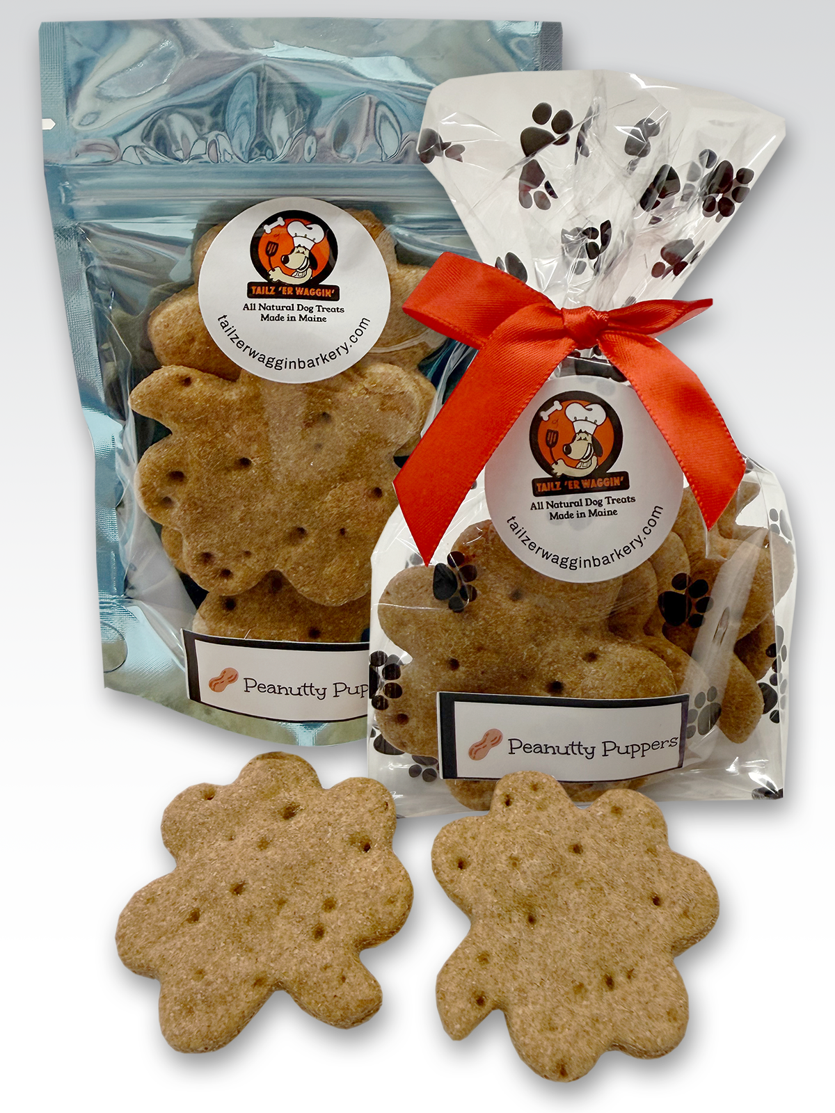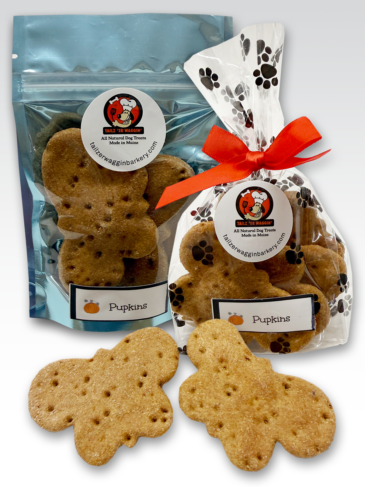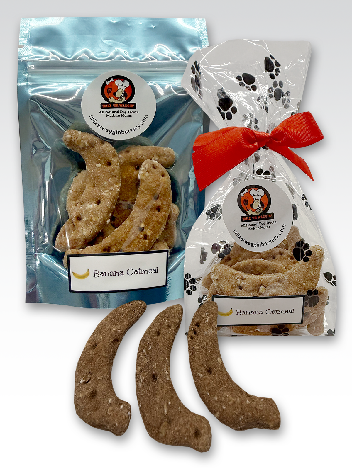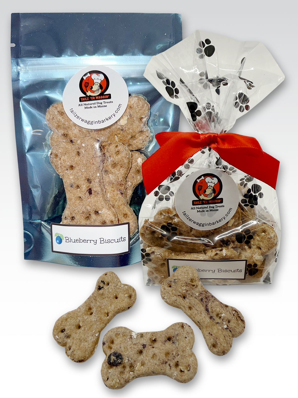 Tailz 'er Waggin' Barkery, where we craft wholesome, all-natural dog treats using limited locally sourced ingredients straight from the heart of Maine. We believe that every pup deserves the best, which is why our treats are made with fresh, high-quality ingredients from trusted local producers. From wild blueberries to organic oats, our recipes are designed to be both nutritious and delicious. Whether you're rewarding good behavior or just treating your furry friend to something special, our handcrafted treats are tail-waggingly good and made with love in every bite!